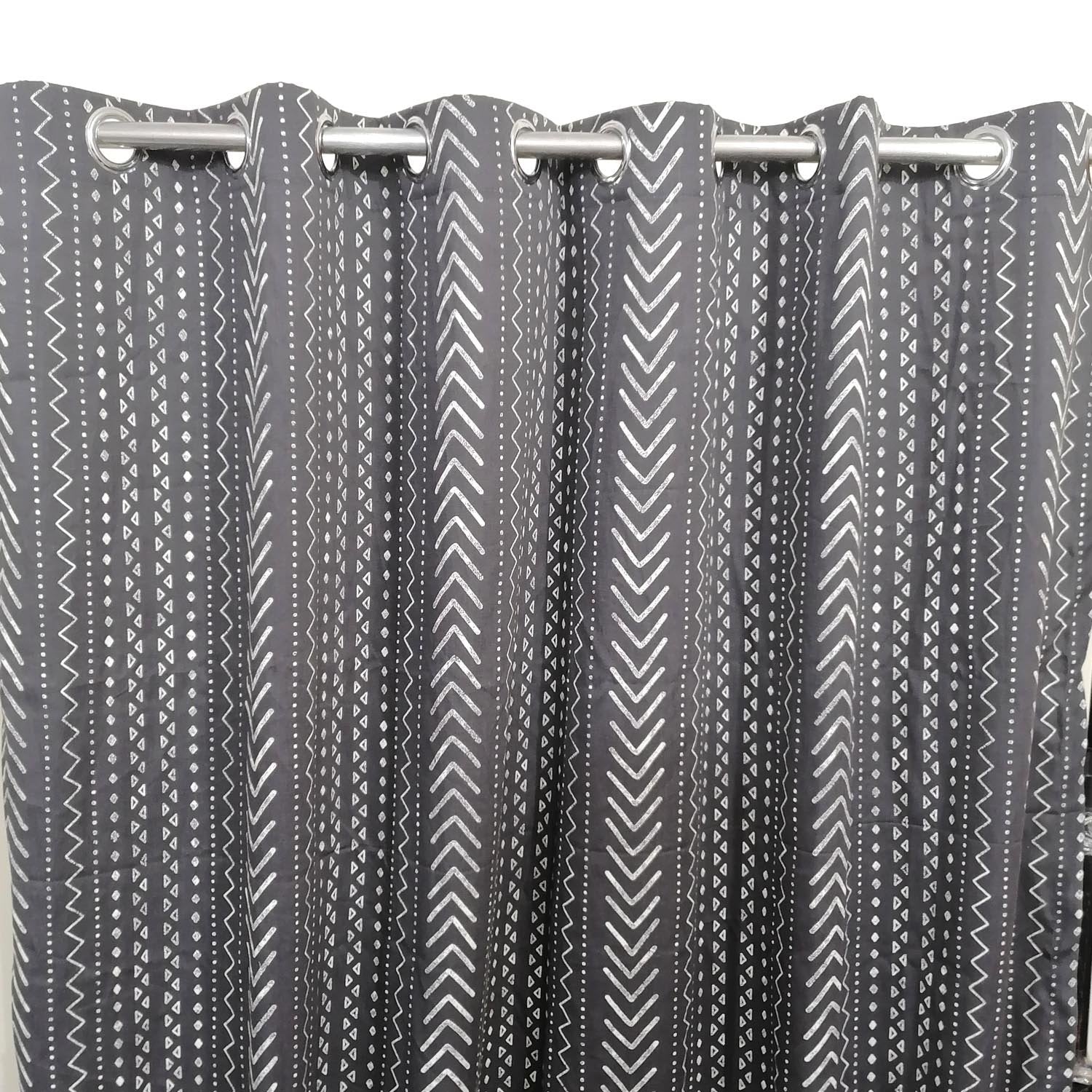 Dark Grey Printed Cotton Curtain